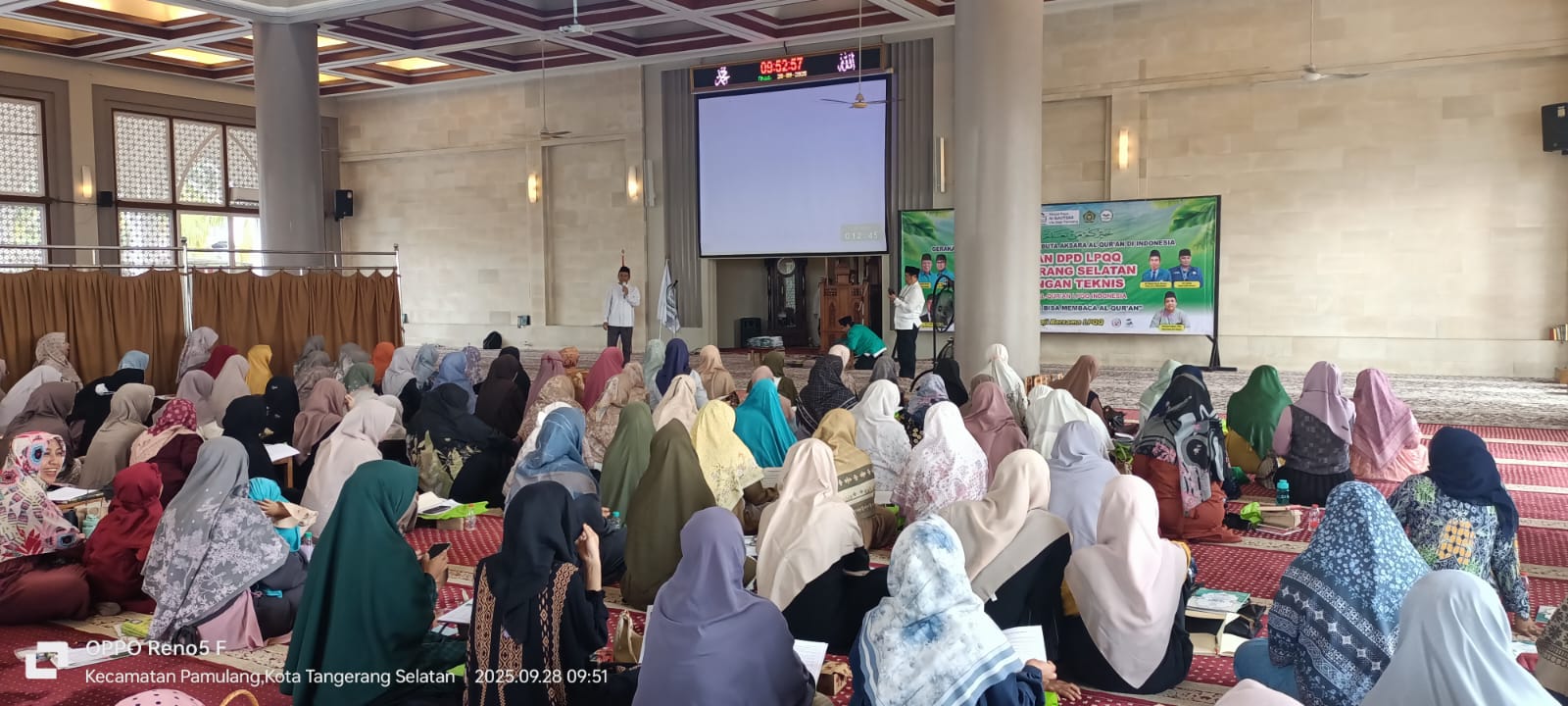 Tangerang Selatan, 28 September 2025 – Ratusan mu’allim dan mu’allimah menghadiri pelantikan Dewan Pimpinan Daerah Lembaga Pembelajaran Qiroatil Qur’an (DPD LPQQ) Tangerang Selatan yang digelar pada Minggu (28/9) di Masjid Raya Al-Kautsar, Vila Dago, Pamulang. Acara yang dirangkaikan dengan Bimbingan Teknis (Bimtek) ini berlangsung khidmat dan penuh antusiasme.