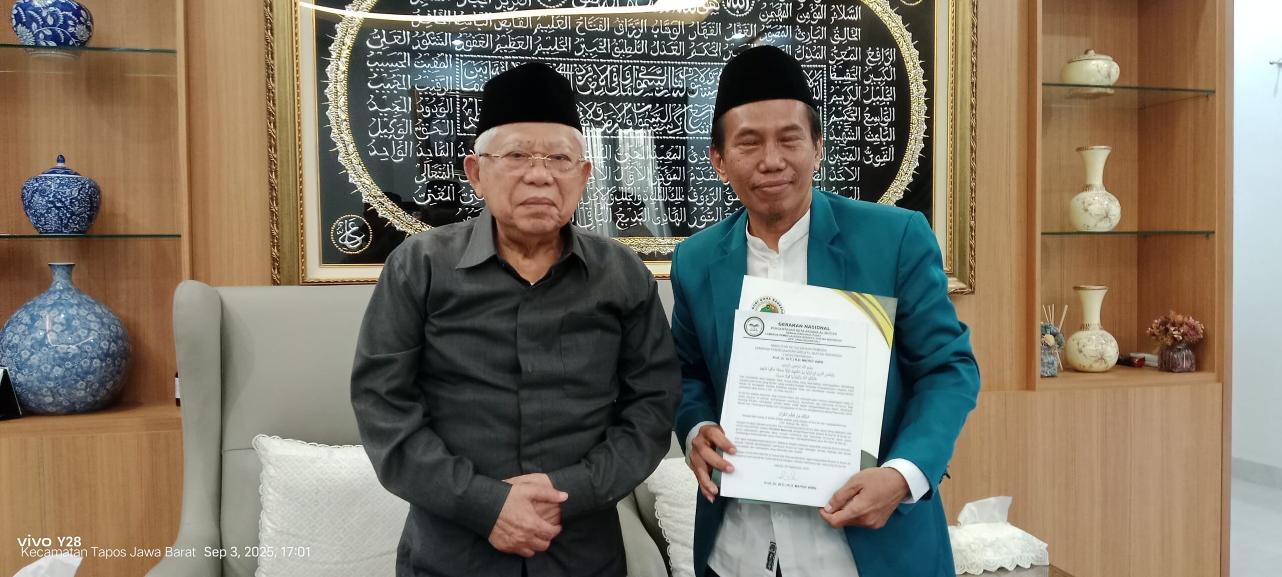 > “Kami menerima dengan senang hati ajakan menjadi ketua pembina. InsyaAllah, siap untuk Al-Qur’an,” ujar KH. Ma’ruf Amin.