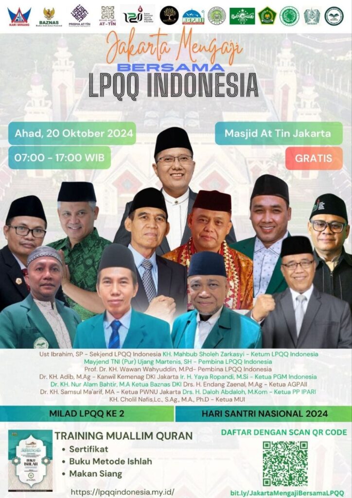 Jakarta, 20 Oktober 2024 – Dalam suasana penuh hikmah dan semangat, LPQQ Indonesia merayakan Milad ke-2 yang bertepatan dengan Hari Santri di Masjid Agung At-Tin, Jl. Taman Mini I No. 3, RW. 3, Pinang Ranti, Kec. Makasar, Kota Jakarta Timur. Acara ini menjadi momen bersejarah, tidak hanya untuk lembaga, tetapi juga bagi seluruh mualim Al-Qur’an yang hadir.